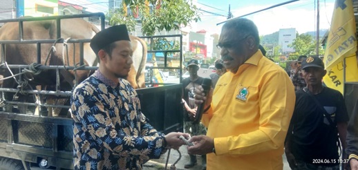 Untuk itu bertepatan dengan hari raya Idul Adha, dirinya selaku Ketua DPD Partai Golkar Kota Jayapura, membagikan hewan kurban 48 ekor sapi kepada masjid dan juga paguyuban yang ada di Kota Port Numbay.